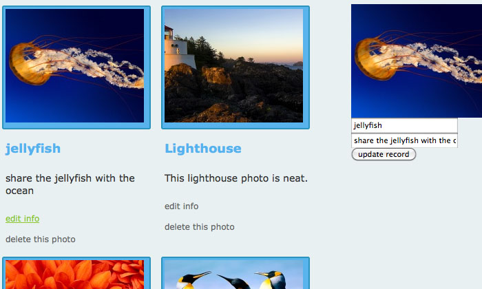 Develop a database where users could upload images and edit their current information on the fly.