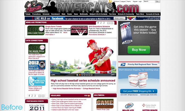 The project was to restructure The Sacramento River Cats existing web page with an easier to use interface, that delivered the most crucial content first.