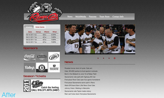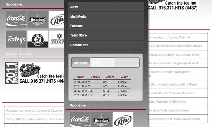 Redesigned webpage to better assimilate with River Cats visual identity. Provided customers with news, sponsors, and a call to action to purchase season tickets, followed by developing XML file to store and update future game schedules. Using responsive style queries, produced a mobile friendly version of the website as well.