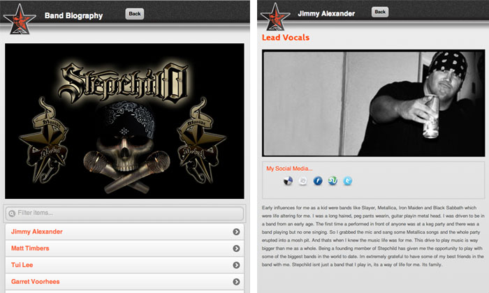 Develop a mobile friendly, app like version of StepChild The Band's web page.