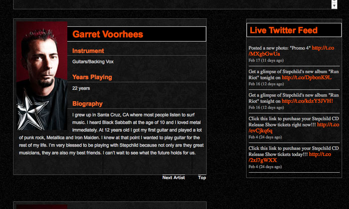 Analyze Step Childs demographics, restructure their exhisting content, and develop a new visual outlook for their site. Enhancing on their social media, ticket sales, and music samples.